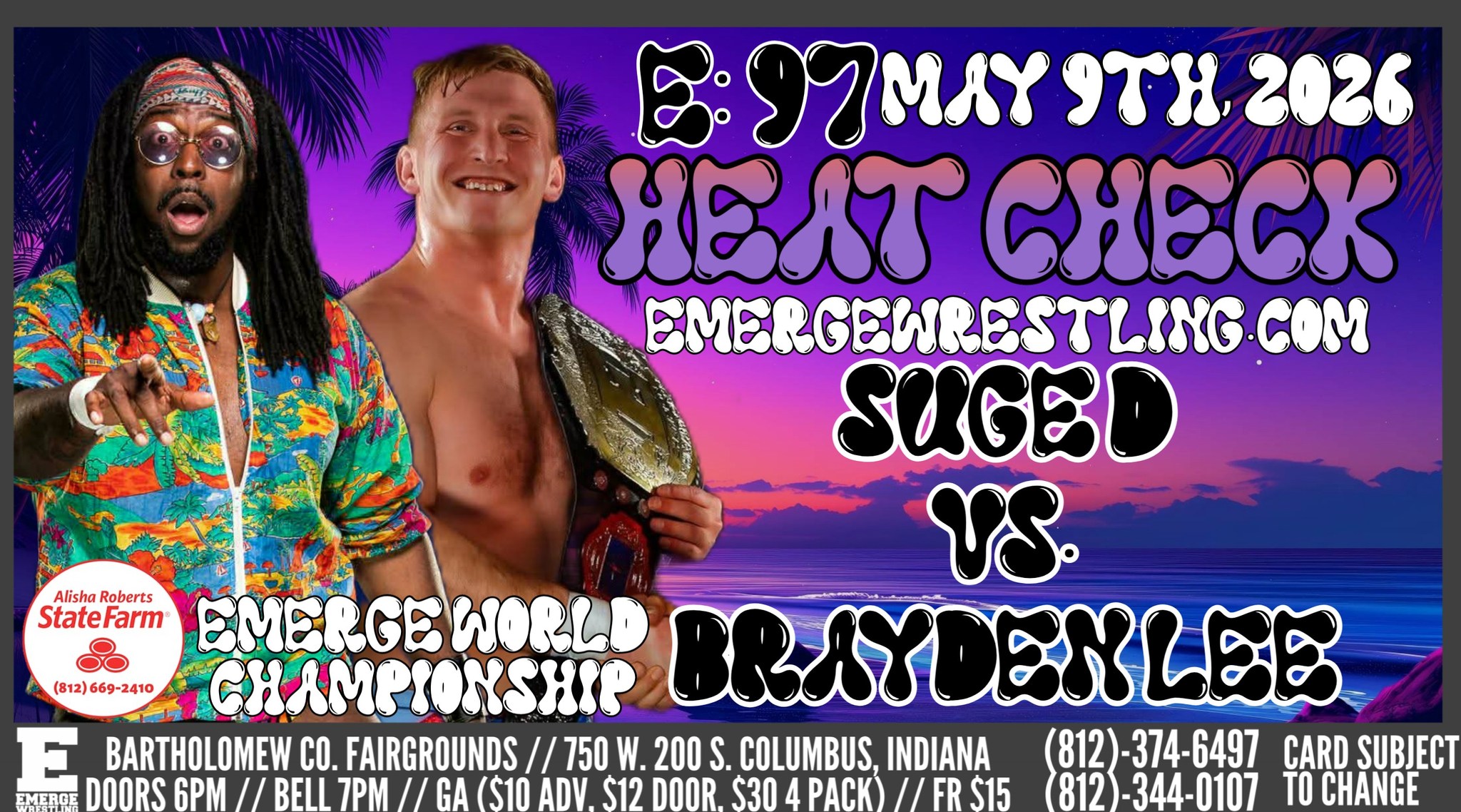 Come join us as we kick of the next 10 years of EMERGE Wrestling on Saturday, February 8 at the Bartholomew County...